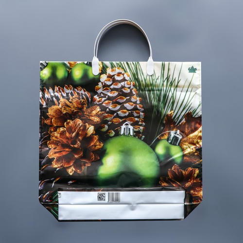 Новый год. Пакет “Зеленые шары”, полиэтиленовый с пластиковой ручкой, 37 х 36 см – 10 шт.