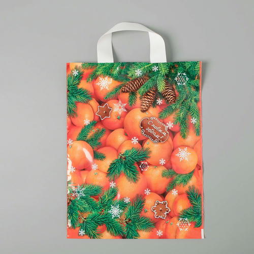 Пакет полиэтиленовый с петлевой ручкой, прочный с оригинальным рисунком.