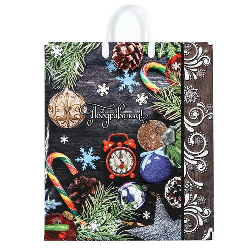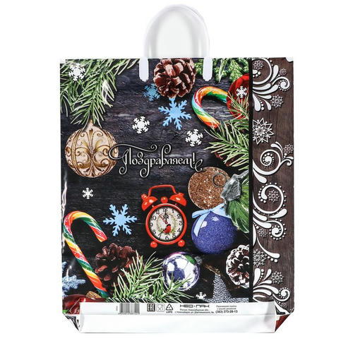 Новый год. Пакет “Новогодняя композиция”, полиэтиленовый с пластиковой ручкой, 38х44 см – 5 шт.