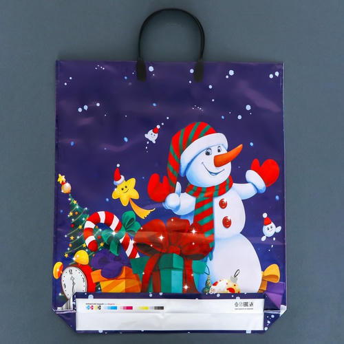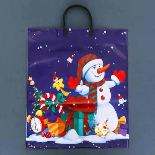 Новый год. Пакет “Снеговичок с подарками”, полиэтиленовый с пластиковой ручкой, 38х45 см – 5 шт.