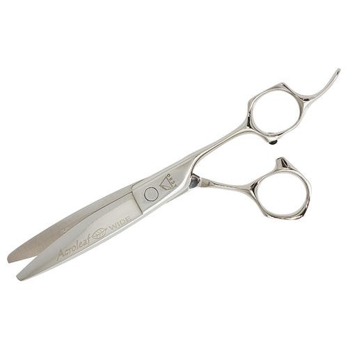 Профессиональные парикмахерские ножницы Acroleaf WIDE для техники скользящего среза. Эта модель специально разработана для стилистов, предпочитающих технику слайсинга и поинтинга. Ярко выраженная дугообразная форма режущих полотен позволяет осуществлять слайсинг по всей длине режущих полотен, т.к. угол между ними постоянен, независимо от того, насколько широко раскрыты лезвия. Широкие массивные полотна, с особо острым углом заточки (28-30 градусов) благодаря своей форме и массе осуществляют скользящий срез без дополнительных усилий их владельца, доставляя истинное удовольствие от работы. Модель Acroleaf WIDE Heavy рекомендуется для стрижки коротких волос.