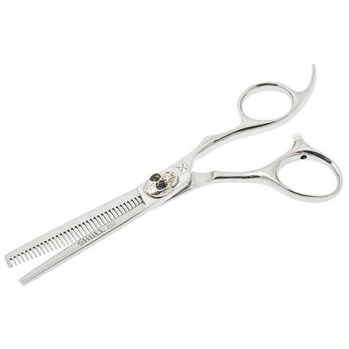 Модель ножниц Katachi SKULL выделяется агрессивным дизайном с декоративной накладкой на винт в виде черепа, изготовленной из нержавеющего сплава. Регулировка натяжения полотен осуществляется с обратной стороны.