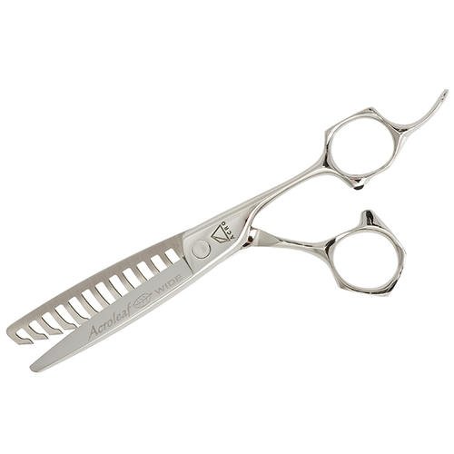 Профессиональные парикмахерские ножницы Acroleaf WIDE К50 для мягкой аккуратной филировки волос и придания внутреннего объёма. Новая форма филировочных зубцов и новая форма режущей кромки каждого зубчика позволяет осуществлять очень мягкую деликатную филировку, после которой не остаётся следов стрижки на волосах и причёска гораздо дольше сохраняет свою первозданную форму. Увеличенное внутреннее расстояние между зубчиками позволяет очень плавно выводить ножницы из волос, не цепляя и не дёргая их. Модель Acroleaf WIDE К50 предназначена для очень деликатной стрижки – процент снятия волос – 40-50% за одиш “шаг” в зависимости от положения рабочих полотен относительно пряди волос.