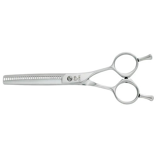 Серия Е является базовой серией филировочных ножниц с симметричными ручками. Самая продаваемая серия филировочных ножниц Joewell в связи с оптимальным соотношением цена-качество. 30 зубьев с насечкой. Срезают около 15% сухих волос.