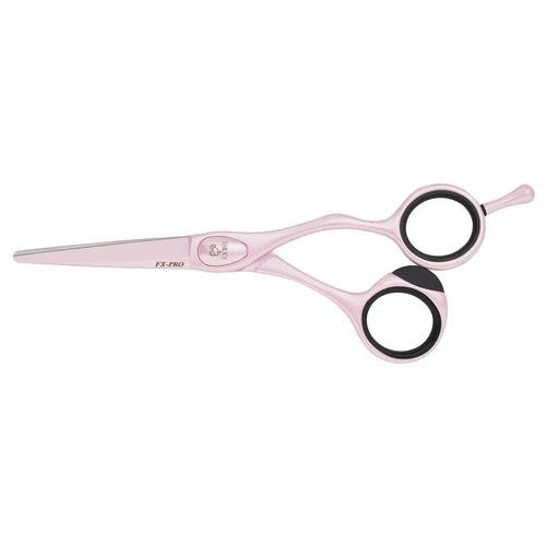 Новый дизайн в стиле 3D. Форма ручек «FX-PRO» такая же, как на моделях серии «FX», но дополнена изогнутым кольцом для большого пальца. Это обеспечивает свободное движение большого пальца и кисти, что очень удобно для мастера. Кроме того, форма одного полотна – «Лезвие меча», а другое – плоское (к голове клиента). Высококачественная нержавеющая сталь (сплав Supreme), винтовая система с сухим подшипником. Гламурное покрытие ножниц эмалью розового цвета. Ножницы предназначены для всех видов стрижек.