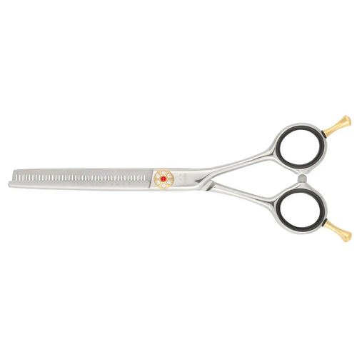 Классическая модель филировочных ножниц отлично подойдет как начинающим парикмахерам, так и профессионалам. Особенностью этой модели является прямое режущее полотно, которое имеет немного большую длину, чем филировочное полотно.