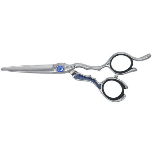 Расширенные полотна позволяют выполнять более точный и мощный срез. Ручки необычной и удобной формы. Верхняя ручка имеет «обратную эргономику», но пальцы на ней чувствуют себя очень комфортно. Нижняя ручка украшена ювелирной эмалью. Кольца имеют неповторимый дизайн. Упор для мизинца несъемный – более плавная форма для размещения пальца и невозможность потери. Винт украшен оригинальным кристаллом Сваровски. Для «посадки» такого крупного кристалла винтовая группа и тела обоих полотен увеличены в размере, что придает большую надежность ножницам в целом.