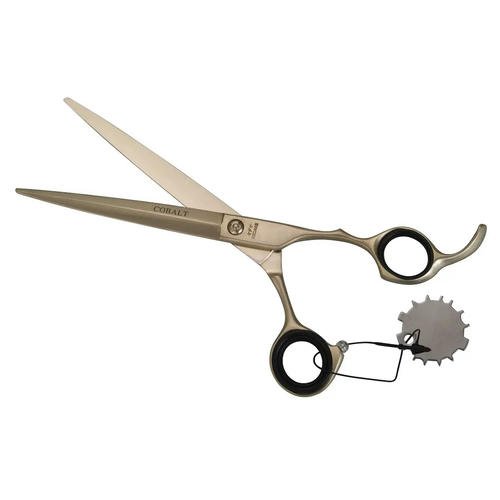 Стойкое к износу декоративное покрытие нитридом титана золотистого цвета придает ножницам солидный и ценный вид. Классический угол заточки позволяет выполнять более точно прямой срез. Отсутствие насечек на полотнах дает возможность работать в технике скользящего среза.