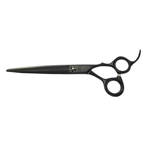 Стойкое к износу декоративное покрытие нитридом титана матового черного цвета придает ножницам строгий, но изящный вид. Классический угол заточки позволяет выполнять более точно прямой срез. Отсутствие насечек на полотнах дает возможность работать в технике скользящего среза.