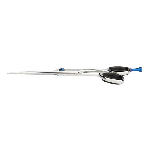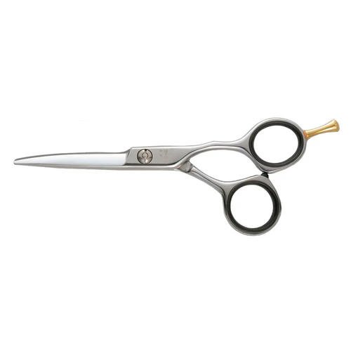 Очень популярная модель в 2001-2005 годах, которая сейчас незаслуженно подзабыта. Оригинальная форма саблевидных полотен позволяет с минимальным усилием совершать врезание при скользящем срезе, да и просто красиво смотрится. Расширенное кольцо под большой палец дает возможность для изменения положения ножниц относительно кисти мастера.