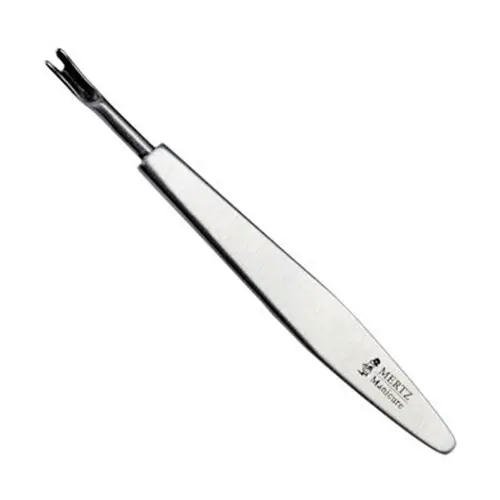 Нож для кутикулы Mertz A124 Этот маникюрный инструмент также известен под названием триммер для кутикулы. На одном конце его обычно располагается шабер для отодвигания кожи, а на другом – острое лезвие, с помощью которого эта кожа срезается.