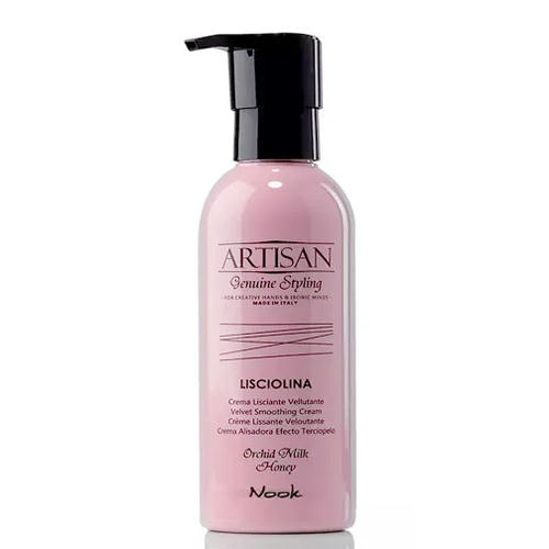 Разглаживающий вельвет-крем Artisan Lisciolina Velvet Smoothing Cream, представленный итальянским брендом Nook, обеспечивает контроль над степенью завивки кудрей, делает волосы послушными и эластичными, сохраняет насыщенность их цвета. Продукт ухаживает за локонами, питает их, гарантирует подвижную фиксацию и термозащиту. Крем имеет приятную бархатную текстуру, которая не утяжеляет пряди.
