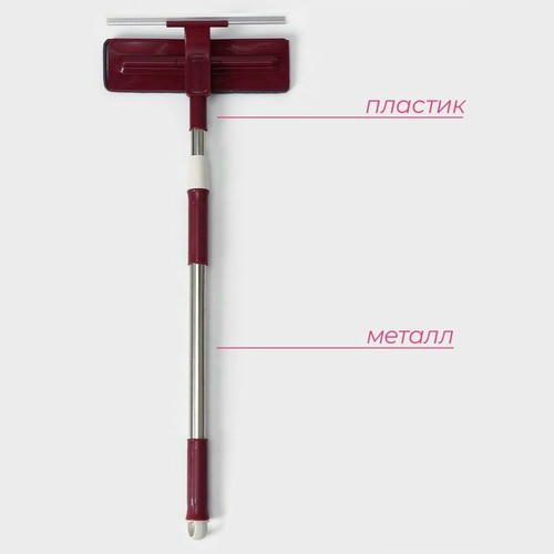 Окномойка с насадкой из микрофибры Доляна, стальная телескопическая ручка, 27x8x73(114) см, цвет МИКС