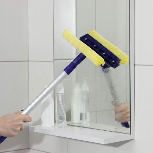 Предмет изготовлен из стали и пластика. Имеет моющую часть и телескопическую ручку. Изделие состоит из поролоновой губки, водосгона и ручки. Последняя будет особенно полезна, если оконный проём находится высоко. Вам достаточно отрегулировать длину, и изделие готово к использованию.