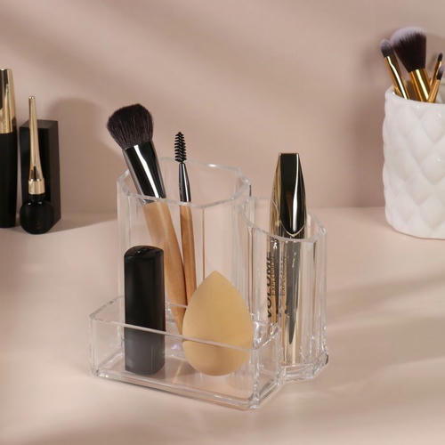 Идеально впишется в любой интерьер и дополнит любое пространство. У органайзера нет ограничений по высоте, поэтому в отделения поместятся и длинные кисти, и высокие бутылочки: и не нужно будет искать отдельные органайзеры и стаканы для кистей и подставки под флаконы.