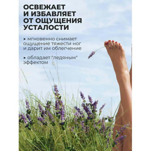Гель с «ледяным» эффектом мгновенно снимает ощущение тяжести ног и дарит им облегчение. Формула обогащена Лавандой БИО, известной своими успокаивающими, восстанавливающими и защитными свойствами.