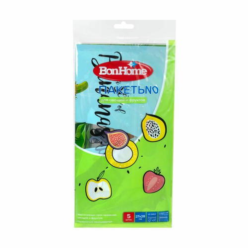 Пакеты для овощей и фруктов, BonHome, 27х28 см, 5 шт., в ассортименте