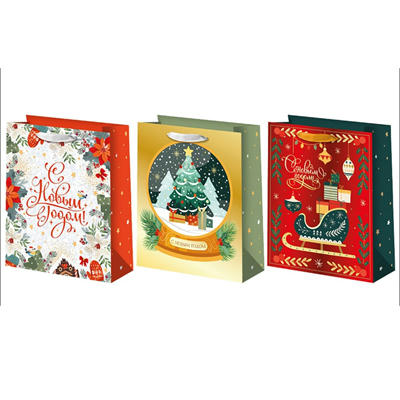 Пакет бумажный подарочный Новый год композиция микс 12х15
