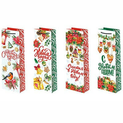 Праздничный пакет для упаковки подарков. В комплекте 12 пакетов. 4 разных дизайна.