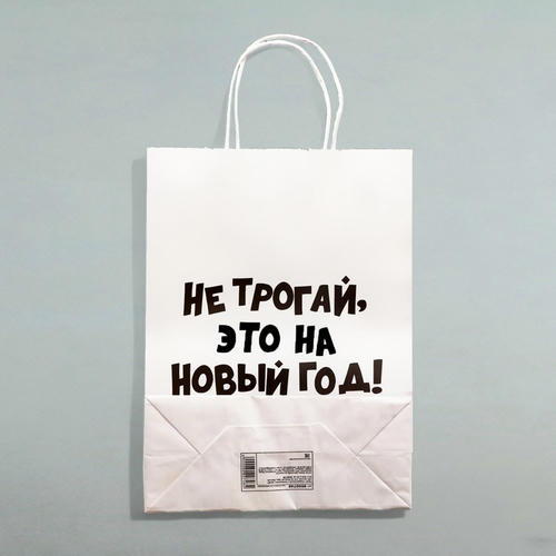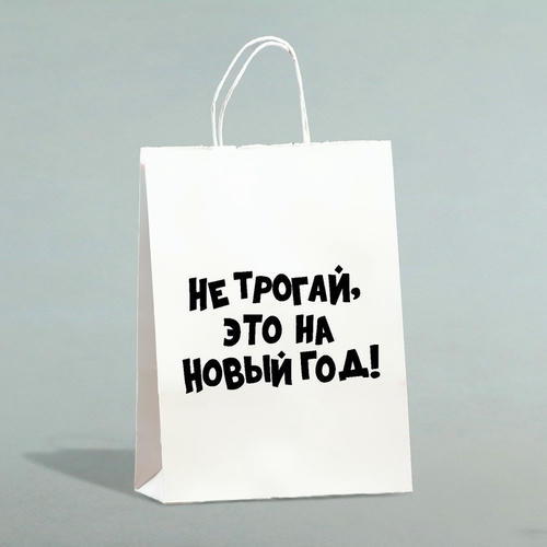 Пакет бумажный подарочный новогодний крафт с приколами, «Не трогай, это на Новый Год», белый, 28 х 24 х 14 см - 1 шт.