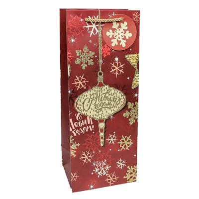 Пакет бумажный подарочный Новый год глиттер микс 14х35см