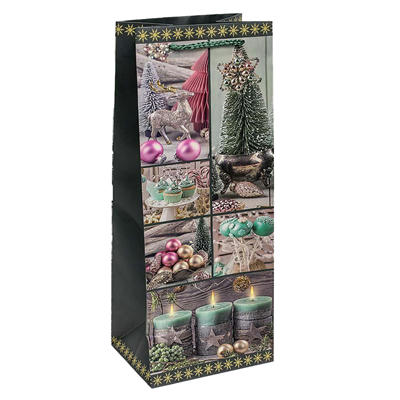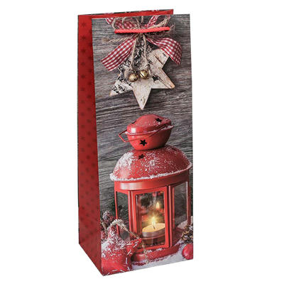 Пакет бумажный подарочный Новый год глиттер микс 14х35см