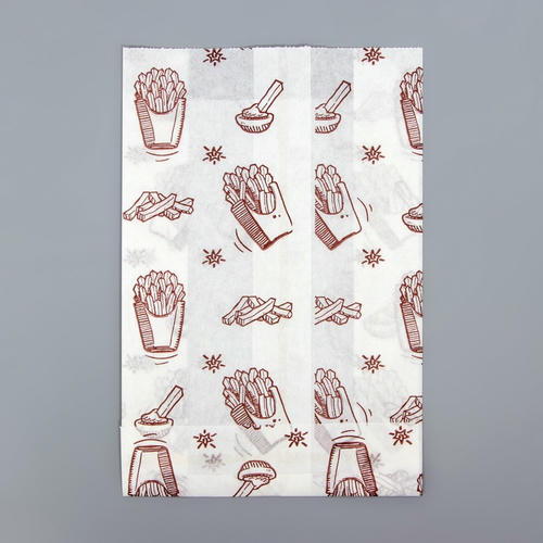 Пакет бумажный с рисунком “КАРТОШКА ФРИ”, жиростойкий, белый, 16,5 х 11 см – 100 шт.