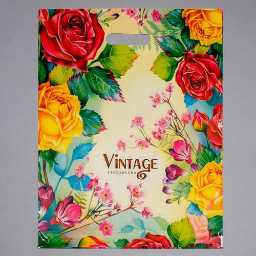 Пакет “Винтаж”, полиэтиленовый с вырубной ручкой, 60 мкм, 38 х 47 см – 50 шт.