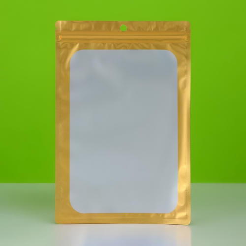 Пакет Зип-лок с окном, с еврослотом, золотой, 16 х 24 см – 100 шт.