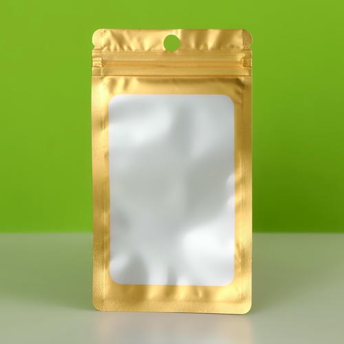 Пакет Зип-лок с окном, с еврослотом, золотой, 8 х 12 см – 100 шт.