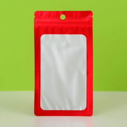 Пакет Зип-лок с окном, с еврослотом, красный, 6 х 10 см - 100 шт.