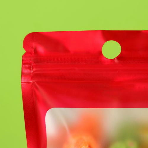Пакет Зип-лок с окном, с еврослотом, красный, 8 х 12 см – 100 шт.