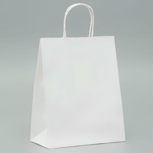 Пакет крафт без печати, белый, плоская ручка 24 х 14 х 28 см - 20 шт.