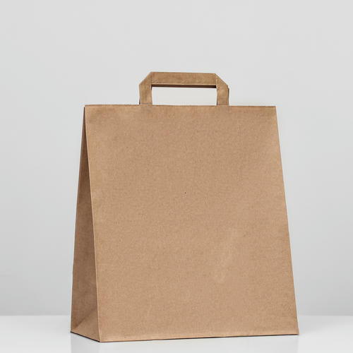 Пакет крафт без печати, плоская ручка 28 х 15 х 32 см – 20 шт.