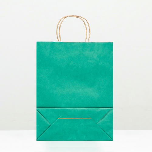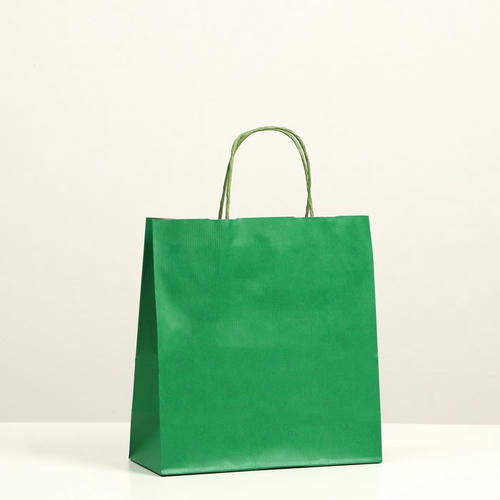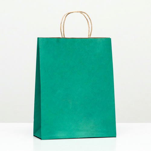 Пакет крафт, зеленый вельвет, с кручеными ручками, 25 х 12 х 27 см – 10 шт.