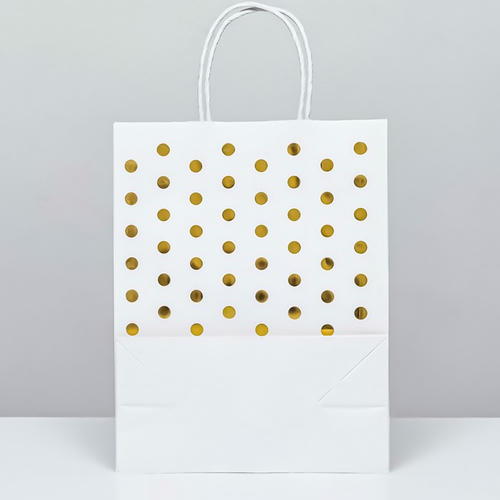 Пакет крафт с золотым тиснением, круглая ручка, белый, 27 х 21 х 11 см, 120 г – 12 шт.