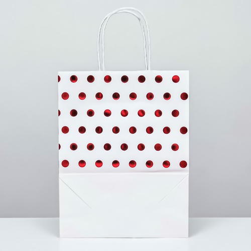 Пакет крафт с красным тиснением, круглая ручка, белый, 15 х 21 х 8 см, 120 г - 12 шт.