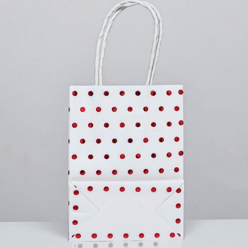 Пакет крафт с красным тиснением, круглая ручка, белый, 15 х 11 х 6 см, 120 г – 12 шт.