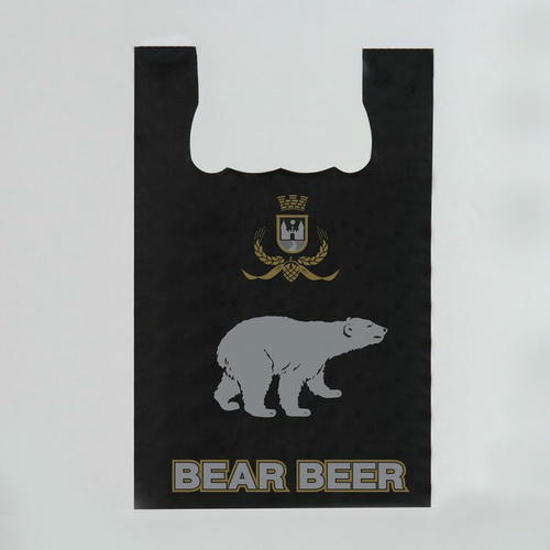 Пакет майка, полиэтиленовый “Медведь”, черный 29 х 55 см, 11 мкм – 100 шт.