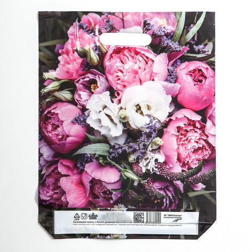 Пакет “Пионы”, полиэтиленовый с вырубной ручкой, 30х40 см, 50 мкм – 50 шт.