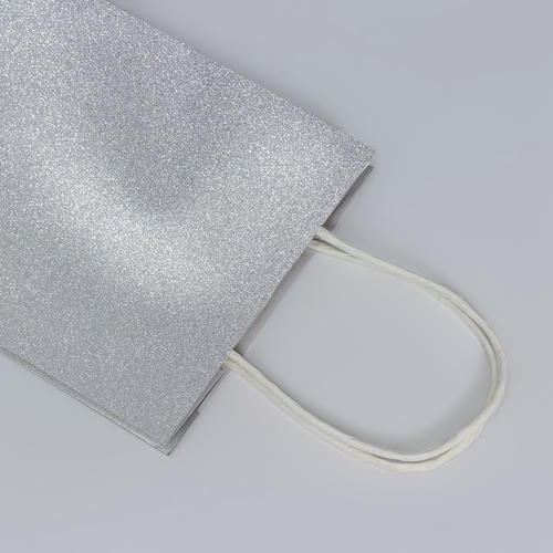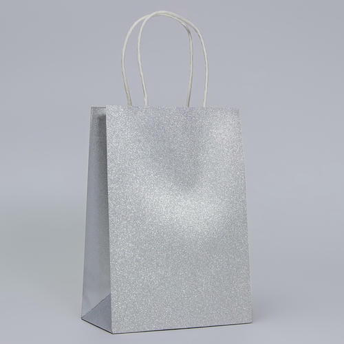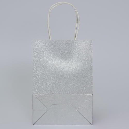 Пакет подарочный бумажный с глиттером серебрянный, 15 х 8 х 21 см – 5 шт.
