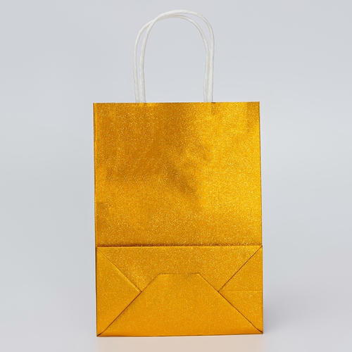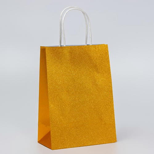 Пакет подарочный бумажный с глиттером золотой, 15 х 8 х 21 см – 5 шт.