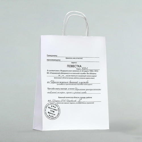 Пакет подарочный «Повестка», 24 х 10 х 32 см – 1 шт.