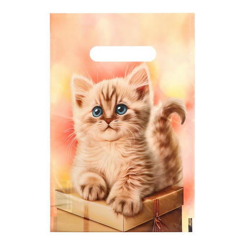 Пакет “Подарочный с котиком”, полиэтиленовый с вырубной ручкой, 20х30 см, 30 мкм – 50 шт.