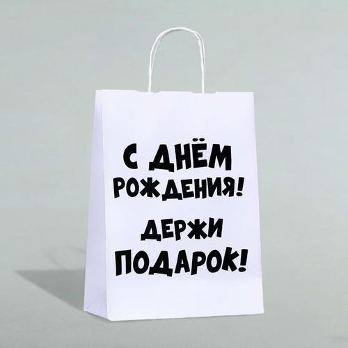 Пакет подарочный с приколами, крафт «Держи подарок», белый, 24 х 14 х 28 см – 1 шт.