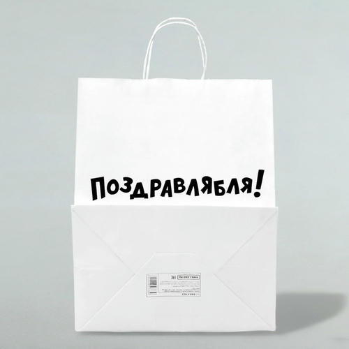 Пакет подарочный с приколами, крафт «Поздравлямба!», белый, 24 х 10,5 х 32 см – 10 шт.