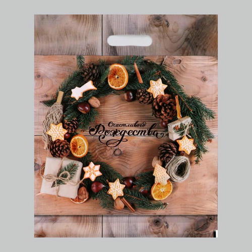 Пакет “Рождественский венок”, полиэтилен. с вырубн. ручкой, 38х47 см, 60 мкм – 5 шт.