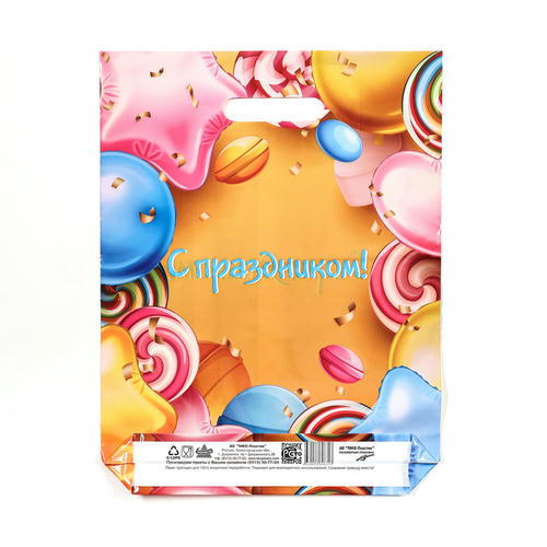 Пакет “С праздником”, полиэтиленовый с вырубной ручкой, 30х39,5 см, 60 мкм – 50 шт.