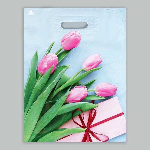 Пакет “Тюльпаны в подарок”, полиэтиленовый, с вырубной ручкой, 31 х 40 см, 60 мкм – 50 шт.