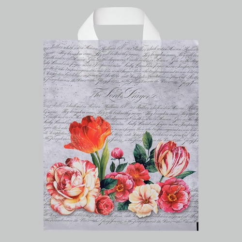 Пакет полиэтиленовый с петлевой ручкой, прочный с оригинальным рисунком.